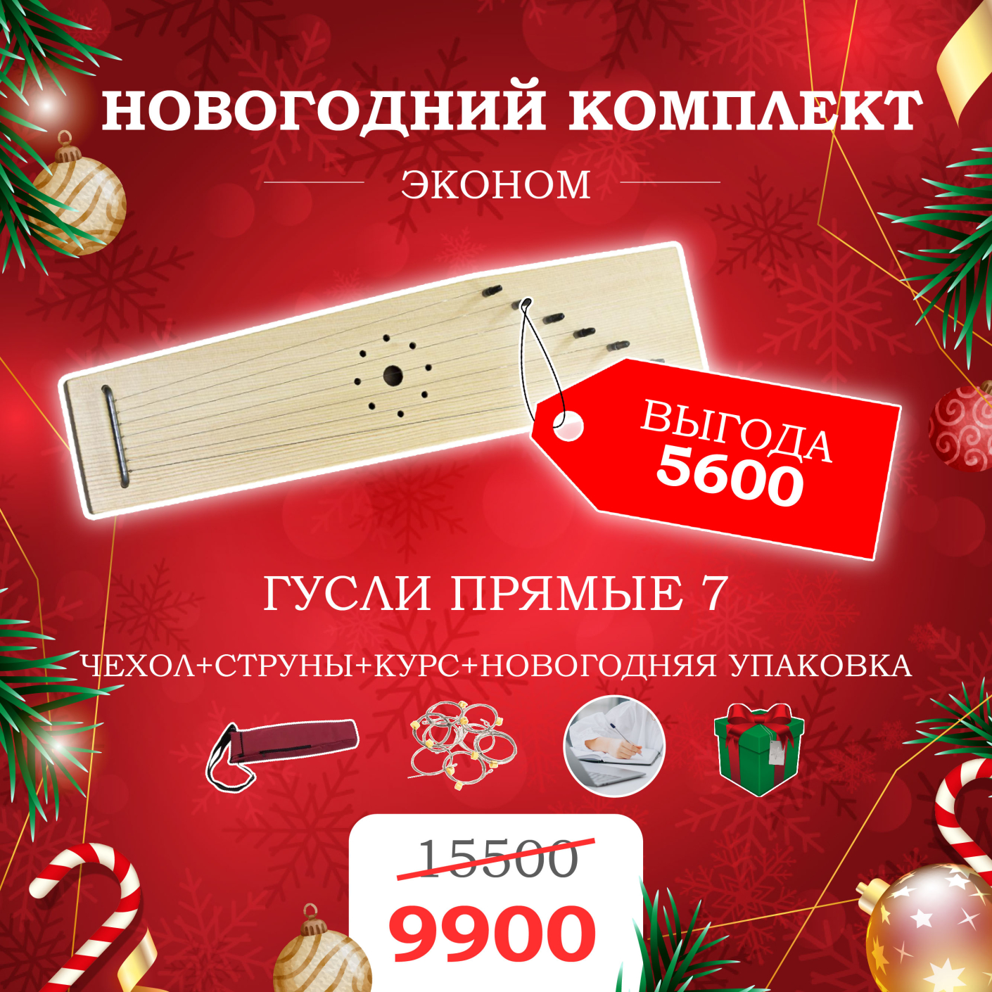Новогодний подарочный набор - 7 струнные гусли.