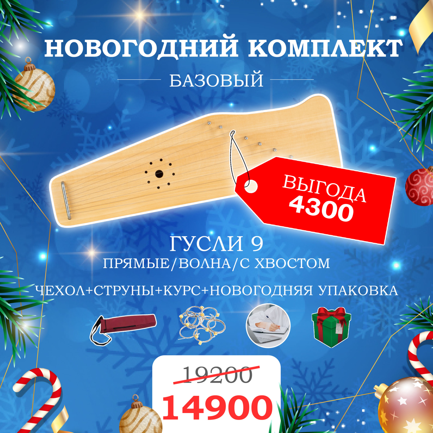 Новогодний подарочный набор - 9 струнные гусли.